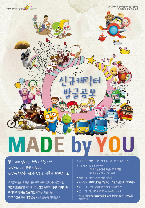 ★ Q& A 트위터 바로가기 : https://twitter.com/Character_KOCCA★ 공모요강 바로가기 : http://www.kocca.kr/notice/notice/1766503_3322.html
