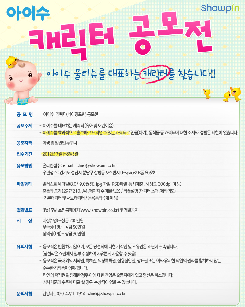 쇼핀 ‘아이수’ 캐릭터 공모전