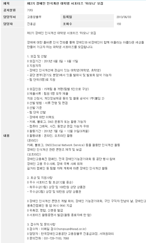 - 담당자 : 한국장애인고용공단 고용창출부 진홍섭과장