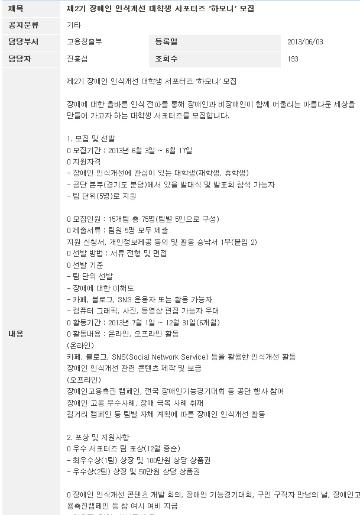 “장애에 대한 올바른 인식 전파를 통해 장애인과 비장애인이 함께 어울리는 아름다운 세상을 만들어 가고자 하는 대학생 서포터즈를 모집합니다.”