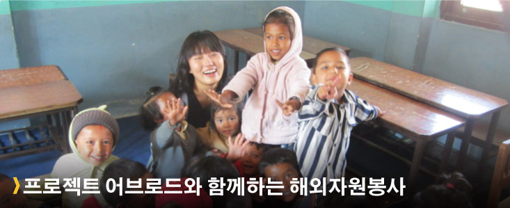 - 프로젝트 어브로드는 국제자원봉사 및 인턴쉽 기관으로, 1992년 설립 이래로 개발도상국의 개발과 국제사회의 협력을 모색하고 있습니다. 프로젝트 어브로드의 사무국이 있는 28개의 개발도상국의 안전한 지역에서 그 지역사회에 필요한 220여 개의 다양한 프로젝트를 운영합니다. 활동국가의 지역문화도 체험하시고, 전 세계에서 온 다른 나라 학생들과 함께 활동하면서 글로벌 리더의 꿈을 키우세요!