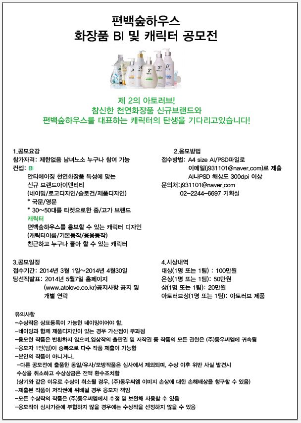 - 아토러브상(1명 또는 1팀): 아토러브 제품