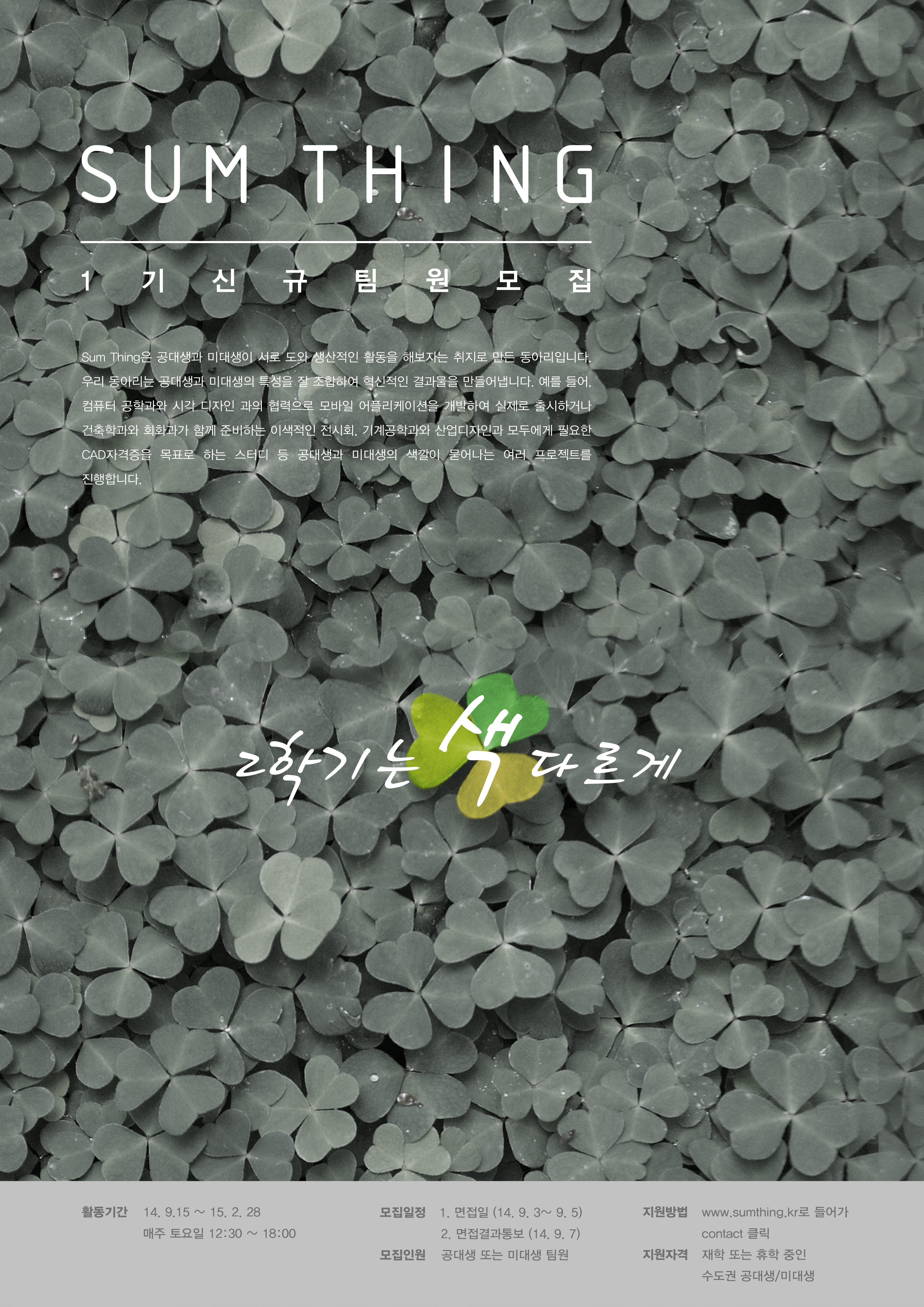 대한민국 단 하나의 공대 & 미대 연합동아리 SumThing!! 동아리원 모집