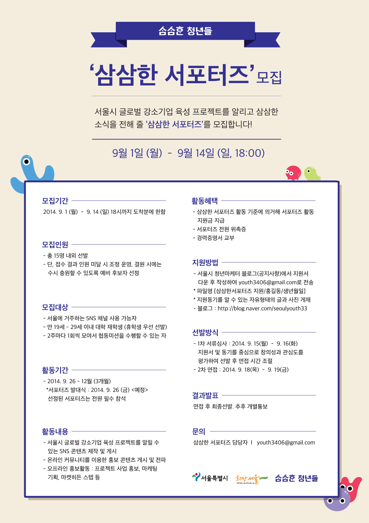 서울시 글로벌강소기업육성프로젝트 '삼삼한서포터즈' 모집