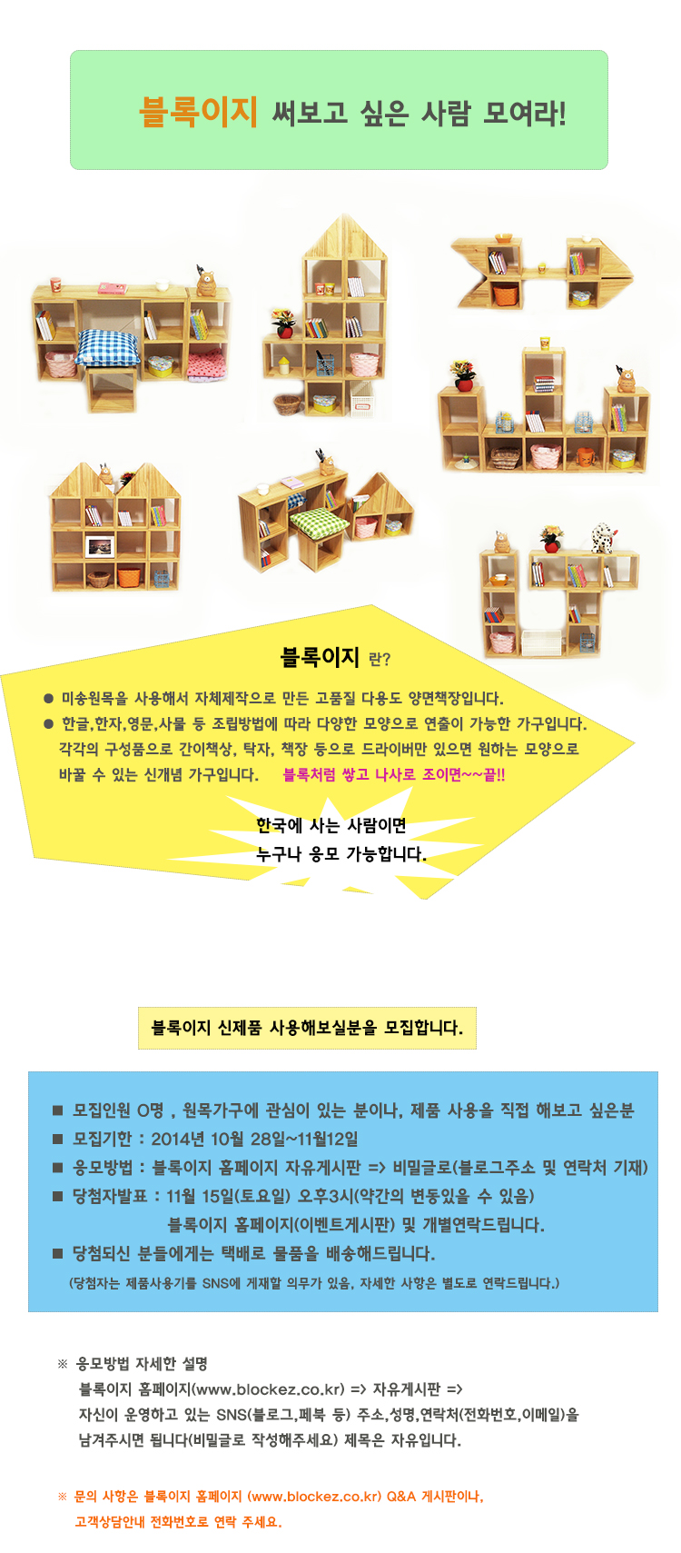 - 응모방법 : 블록이지 홈페이지 자유게시판 => 비밀글로(블로그주소 및 연락처 기재)