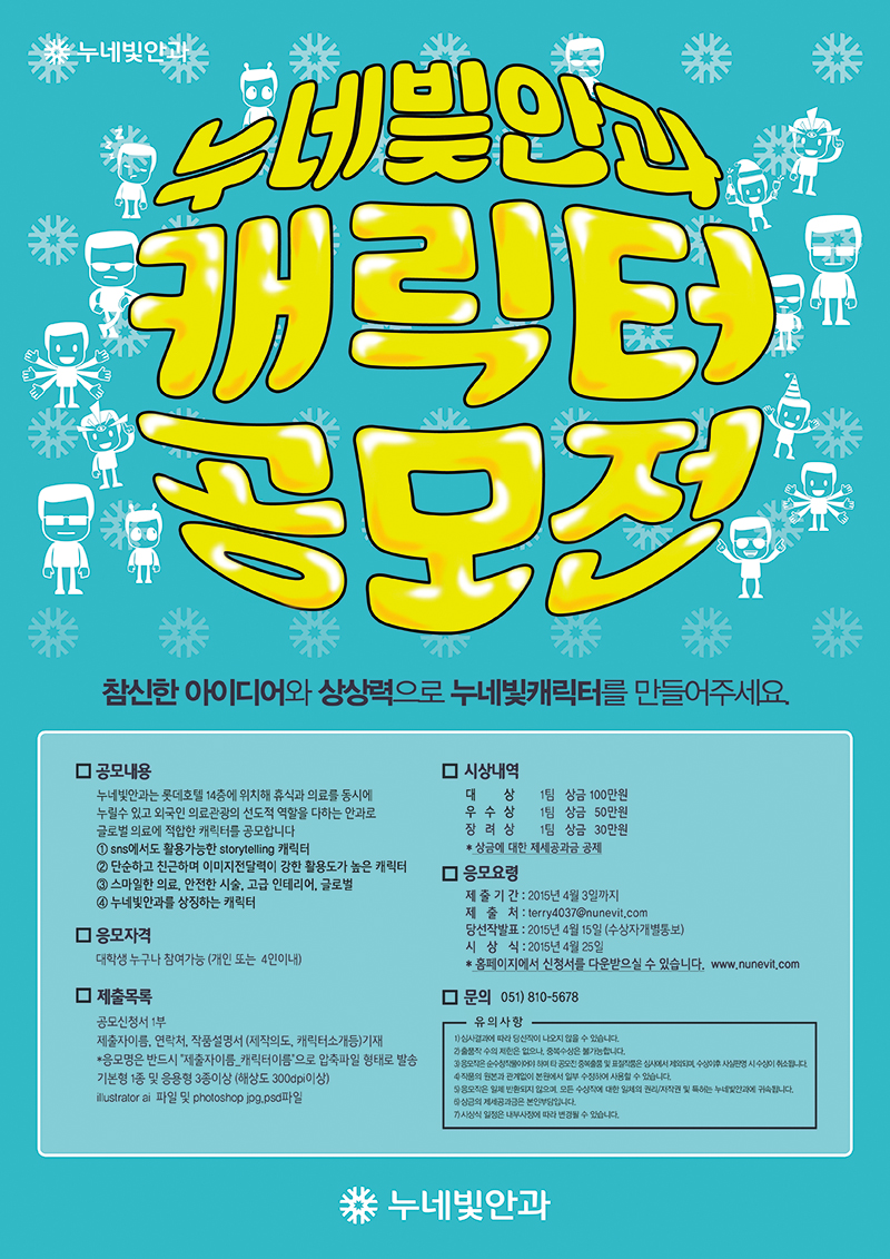 - 응모작은 일체 반환되지 않으며, 모든 수상작에 대한 일체의 권리/저작권 및 특허는 누네빛안과에 귀속됩니다.