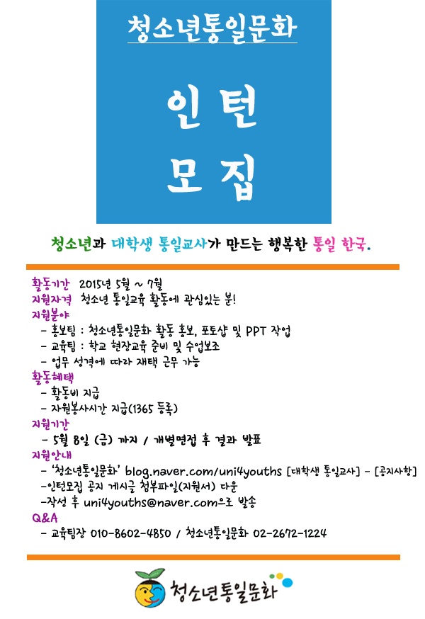 - 교육팀장 010-8602-4850 / 청소년 통일문화 02-2672-1224