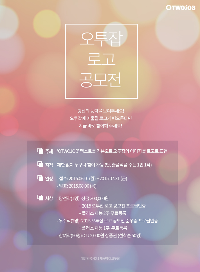 - 당선된 작품의 저작권 및 모든 권한은 (주)오투잡에 귀속됩니다.