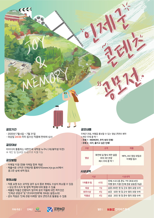 3. 공모 작품은 '인제 관광 마케팅' 홍보 콘텐츠로 활용될 수 있음.