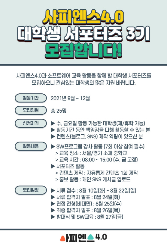 - 발대식 및 SW교육 : 8월 27일(금)