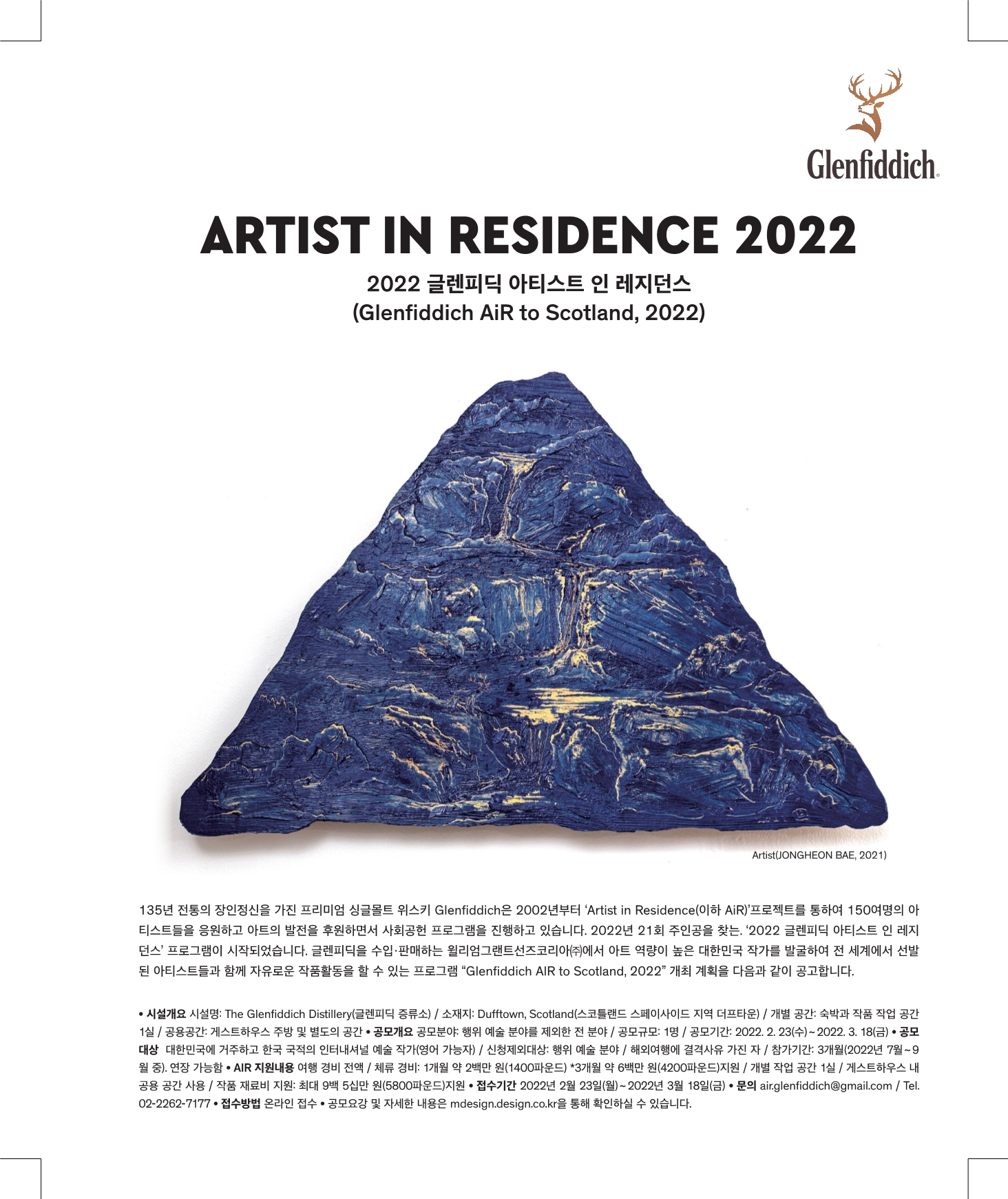 ■ 문의: 글렌피딕 아티스트 인 레지던스 사무국 02-2262-7177, air.glenfiddich@gmail.co.kr