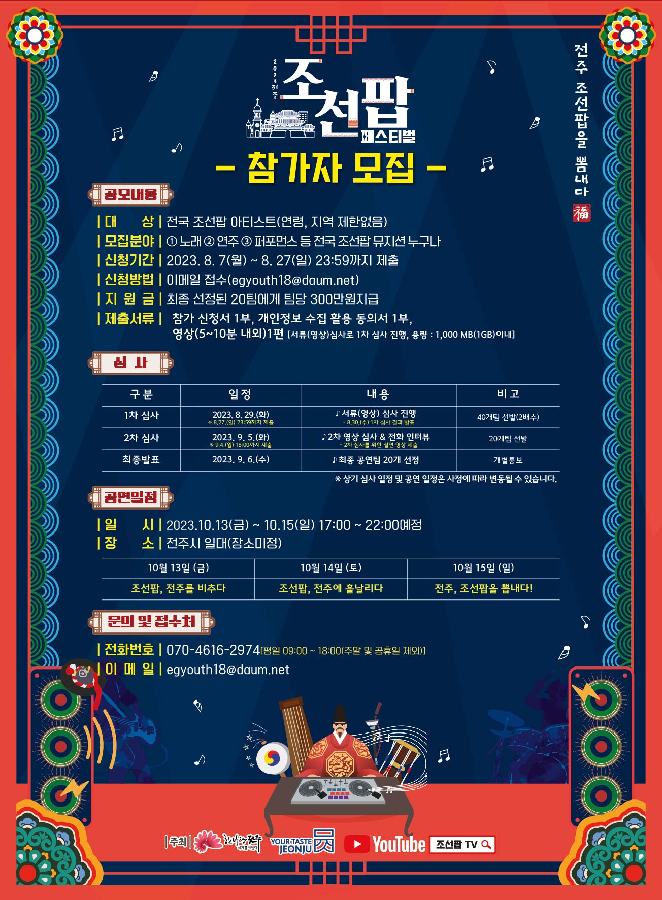 2023 전주조선팝페스티벌 추진사무국 이메일(egyouth18@daum.net) 접수!