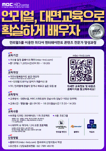 ▪ 언리얼5를 이용한 미디어엔터테인먼트 콘텐츠 전문가 양성과정