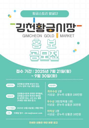 - 김천황금시장과 관련된 창작물로, 김천황금시장의 특색과 매력을 잘 표현한 영상, 사진 또는 웹툰
