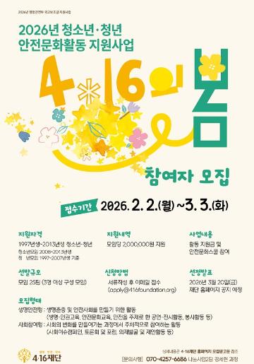 2026년 청소년·청년 안전문화활동 지원사업 <4.16의 봄> 참여자 모집