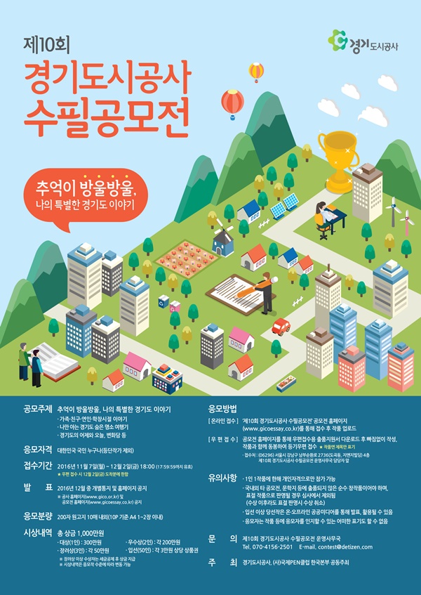- ‘제10회 경기도시공사 수필공모전’ 공모전사이트(www.gicoessay.co.kr) 통해 접수 후 작품 업로드