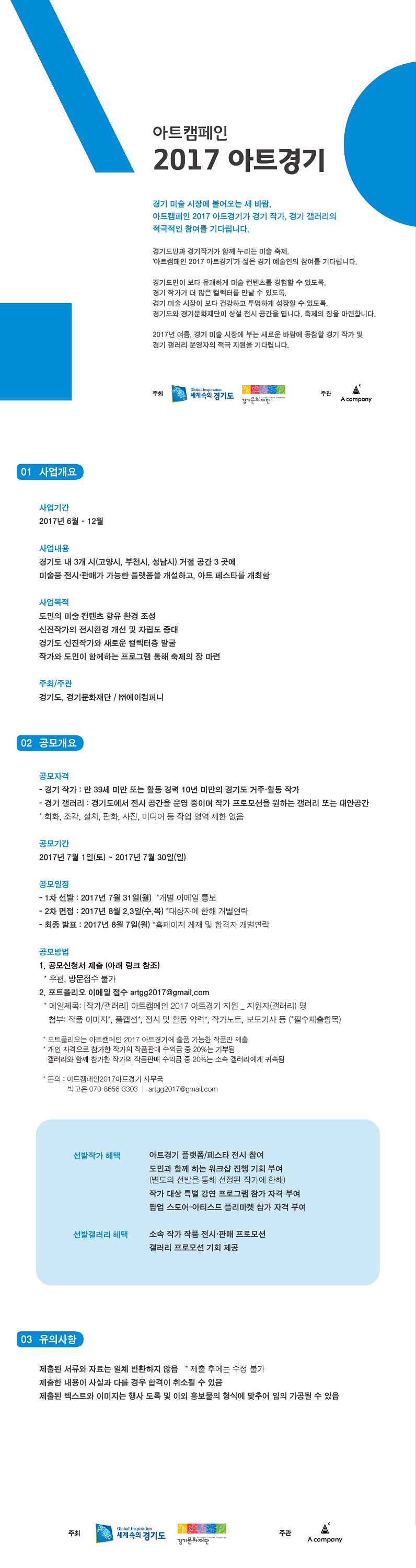 - 아트캠페인 2017 아트경기 사무국 박고은 (Tel.070-8656-3303 / E-mail. artgg2017@gmail.com)