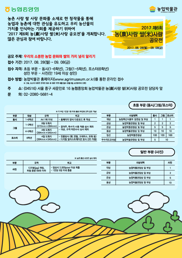 - 결과발표 : 2017년 10월 중, 농업박물관 및 쌀박물관 홈페이지 게시