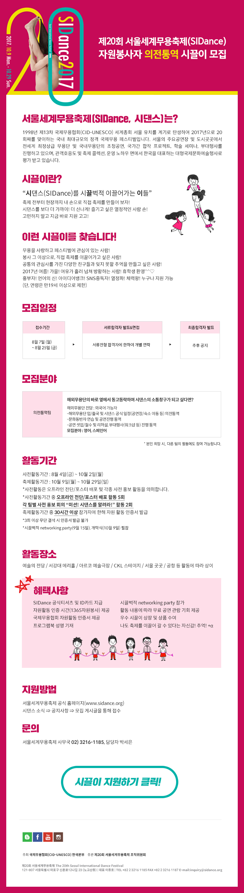 제20회 서울세계무용축제 의전통역 자원봉사자 시끌이 추가 모집
