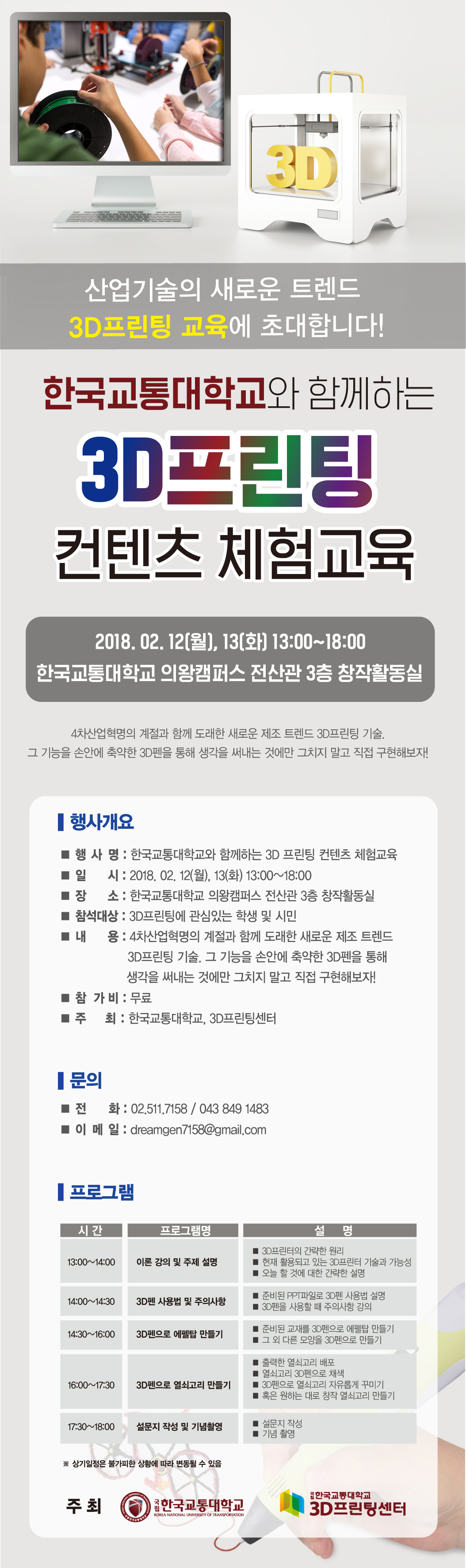 ▶ 행 사 명 : 한국교통대학교와 함께하는 3D프린팅 컨텐츠 체험교육