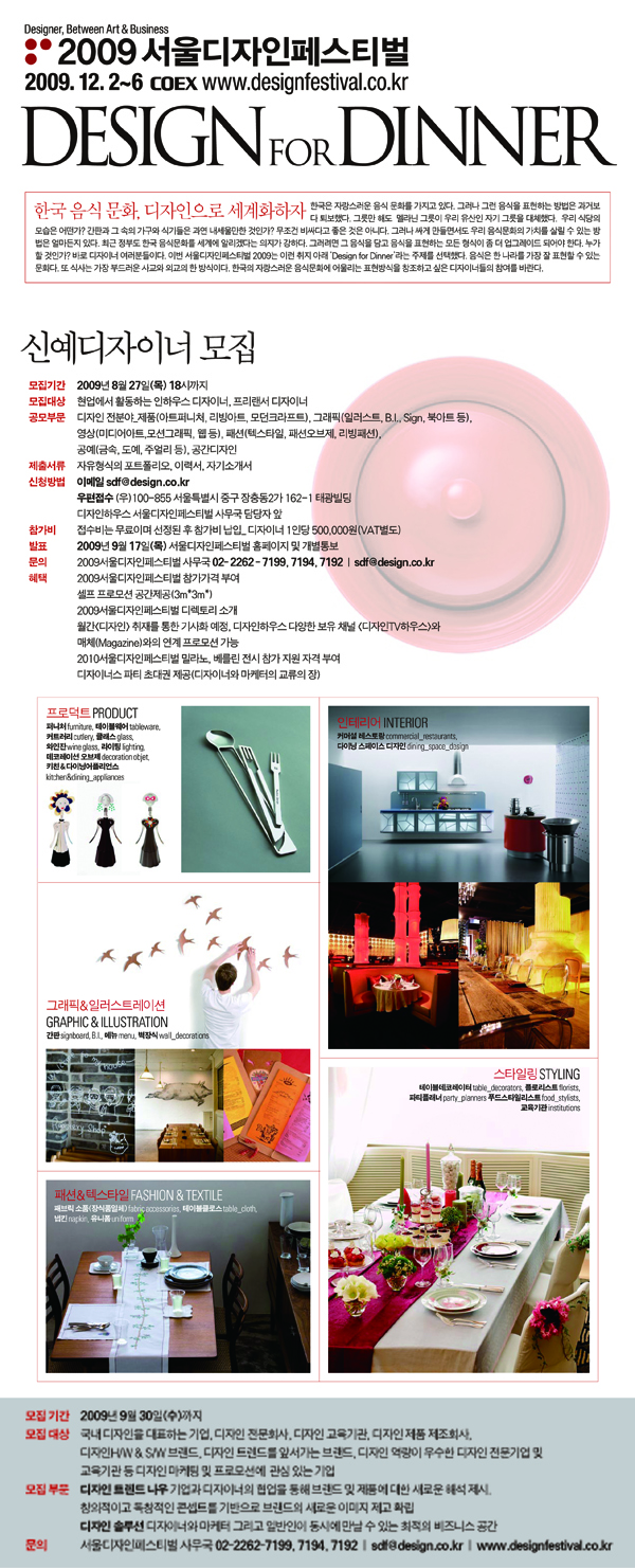 발표: 2009년 9월 17일(목) 서울디자인페스티벌 홈페이지 및 개별통보