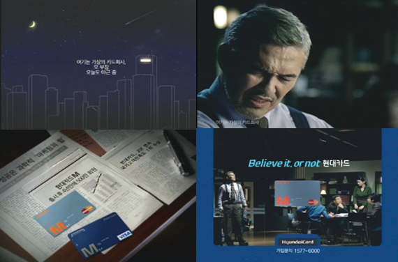 대한민국 최고 빅모델들의 경연장이 되고 있는 신용카드 광고에서 빅모델 하나 없이 눈에 띄는 신용카드 광고가 있어 화제다. 현대카드M의 위력을 ‘가상극’이라는 독특한 상황으로 그린 ‘타의 모범이 되는 카드’ 광고가 그것이다.