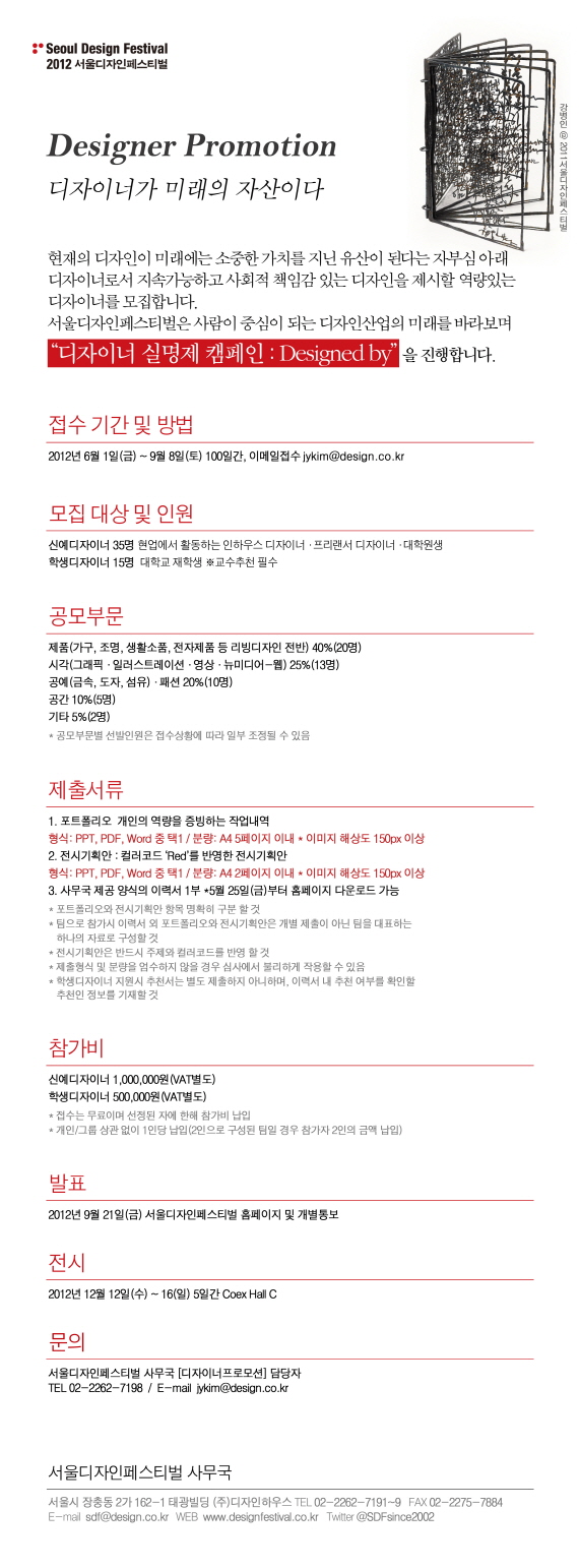 2012년 9월 21일(금) 서울디자인페스티벌 홈페이지 및 개별통보