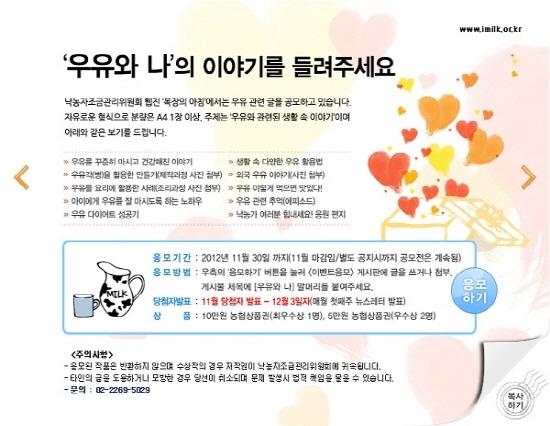 - 홈페이지 접수 : www.imilk.or.kr