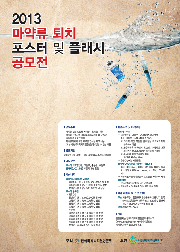 마약류퇴치 포스터 및 플래시 공모전 담당자앞 (전화 02-2677-2245)