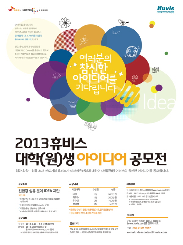- 첨단 화학·섬유 소재 선도기업 휴비스가 미래섬유산업에 대하여 대학(원)생 여러분의 참신한 아이디어를 공모합니다