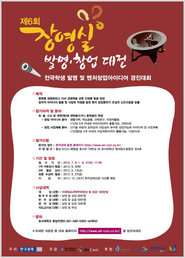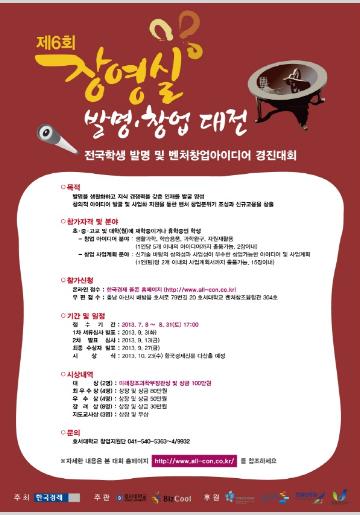* 제6회 장영실 발명·창업대전 운영사무국 : 02-360-4538