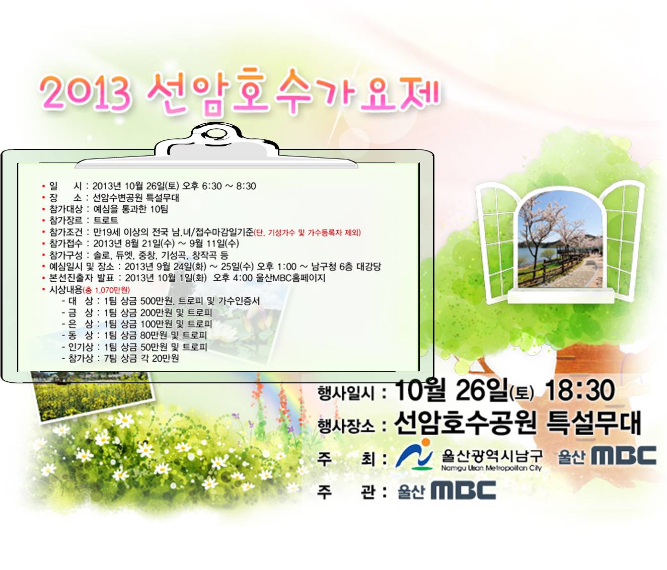 - 본선진출자발표 : 2013년 10월 1일(화) 오후4시 울산MBC홈페이지