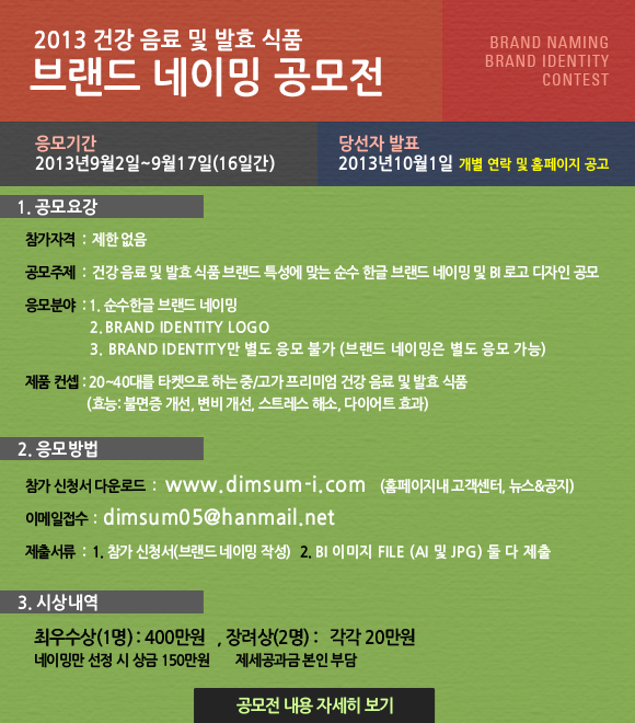 2013 건강 음료 및 발효 식품 브랜드 네이밍 공모전