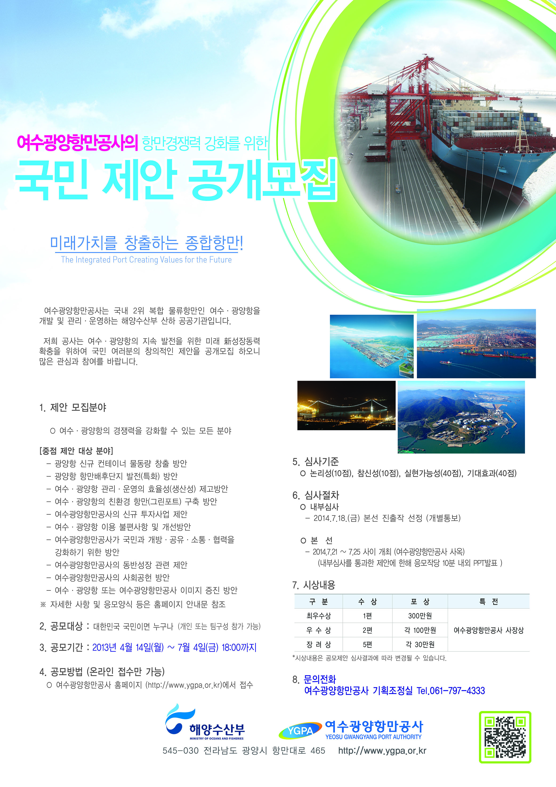 - 장려상(5편) : 각 30만원 + 각 여수광양항만공사 사장상