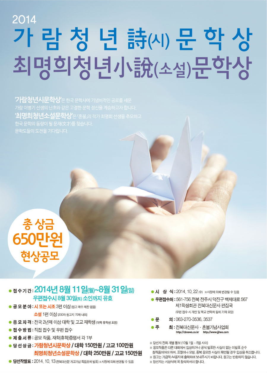 2014 가람청년詩(시)문학상 / 최명희청년小說(소설)문학상
