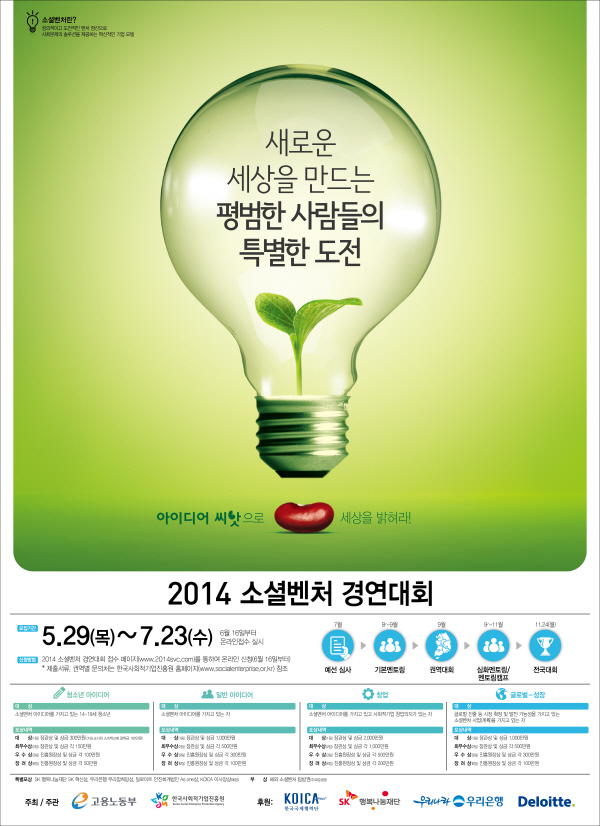 - 신청방법 : 2014 소셜벤처 경연대회 접수 페이지를 통하여 온라인 신청