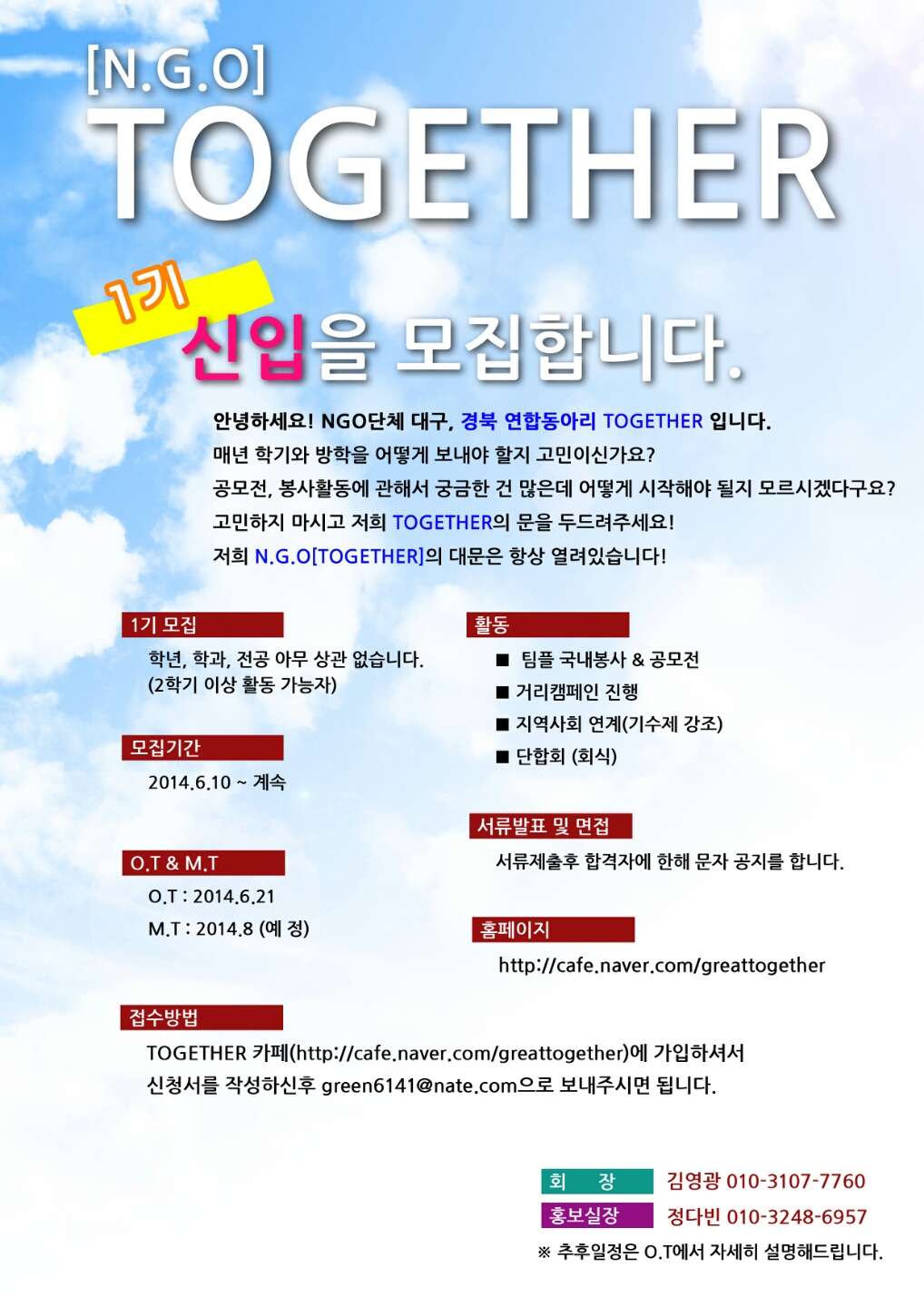 NGO단체 대구, 경북 연합동아리 Together에서 1기멤버를 모집합니다