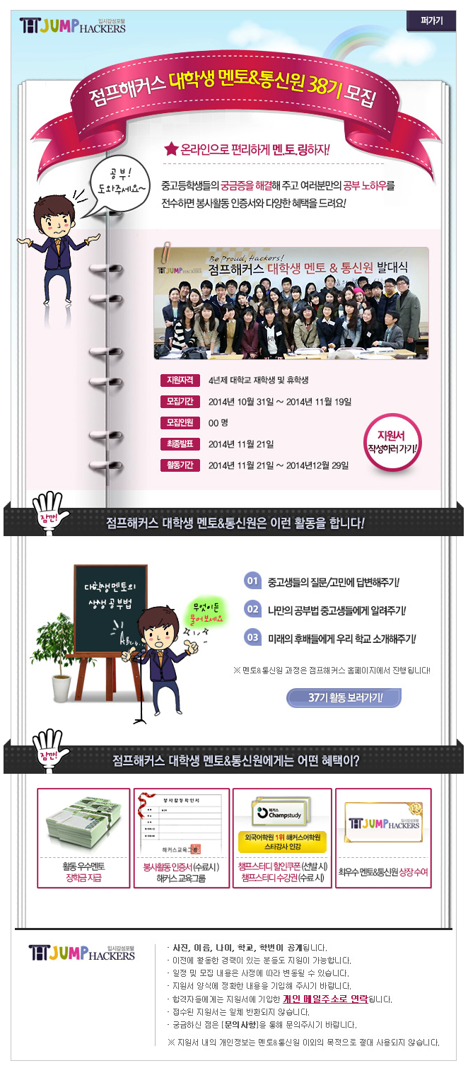 [점프해커스] 대학생 멘토&통신원 38기 모집 (중고생 온라인멘토링)