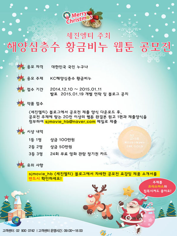 으로 제출합니다. - 메일 제목은 " 웹툰공모전-000 " 로 제출 바랍니다. ※예를들면, "웹툰공모전-홍길동" - 반드시 제품을 유머러스하게 소개하는 웹툰이어야 합니다. - 웹툰 제작 시 크리스마스 관련 / 자사 대리점 모집 관련 등의 응용주제를 허용합니다.