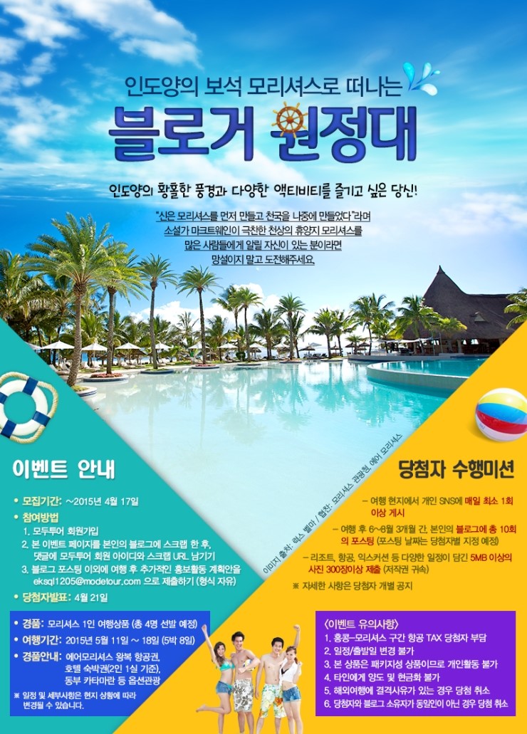 인도양의 보석 모리셔스로 떠날 여행블로거를 모집합니다! (~4/17)