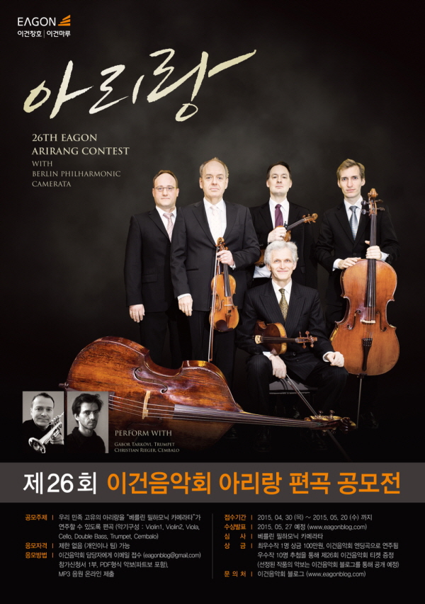 - 우수작 (10명) : 추첨을 통해 제26회 이건음악회 티켓 증정 (선정된 작품의 악보는 이건음악회 블로그를 통해 공개 예정)