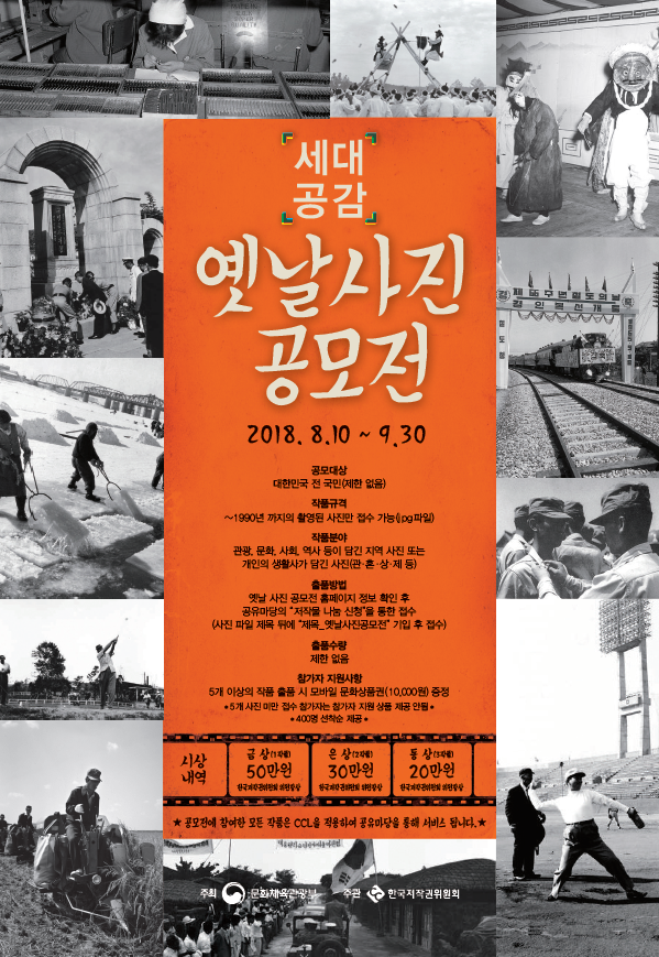 - 출품방법 : 옛날 사진 공모전 홈페이지 정보 확인 후 공유마당의 “저작물 나눔 신청”을 통한 접수