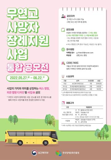 - 이에 빈소를 갖춘 운구용 버스를 통해 무연고 사망자를 위한 존엄한 장례의식을 지원하는 사업을 추진하고자 함
