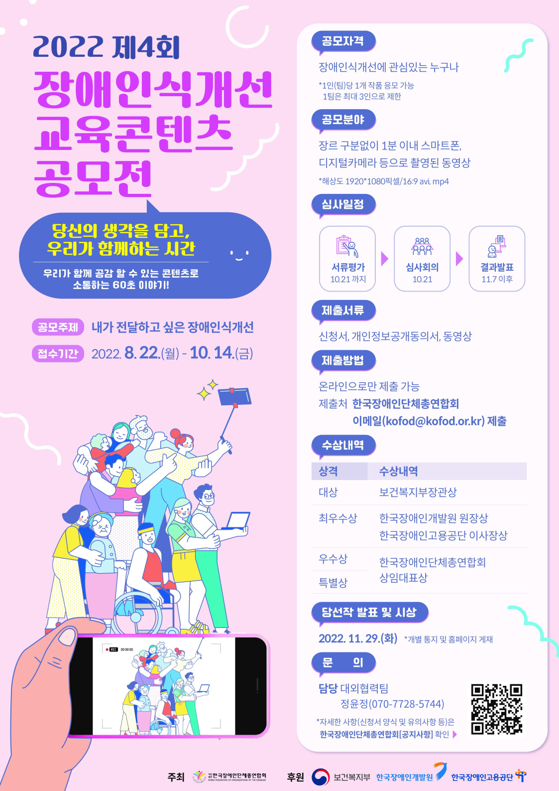 장애인식개선 주제 / 장르 구분 없이 1분 이내의 영상물