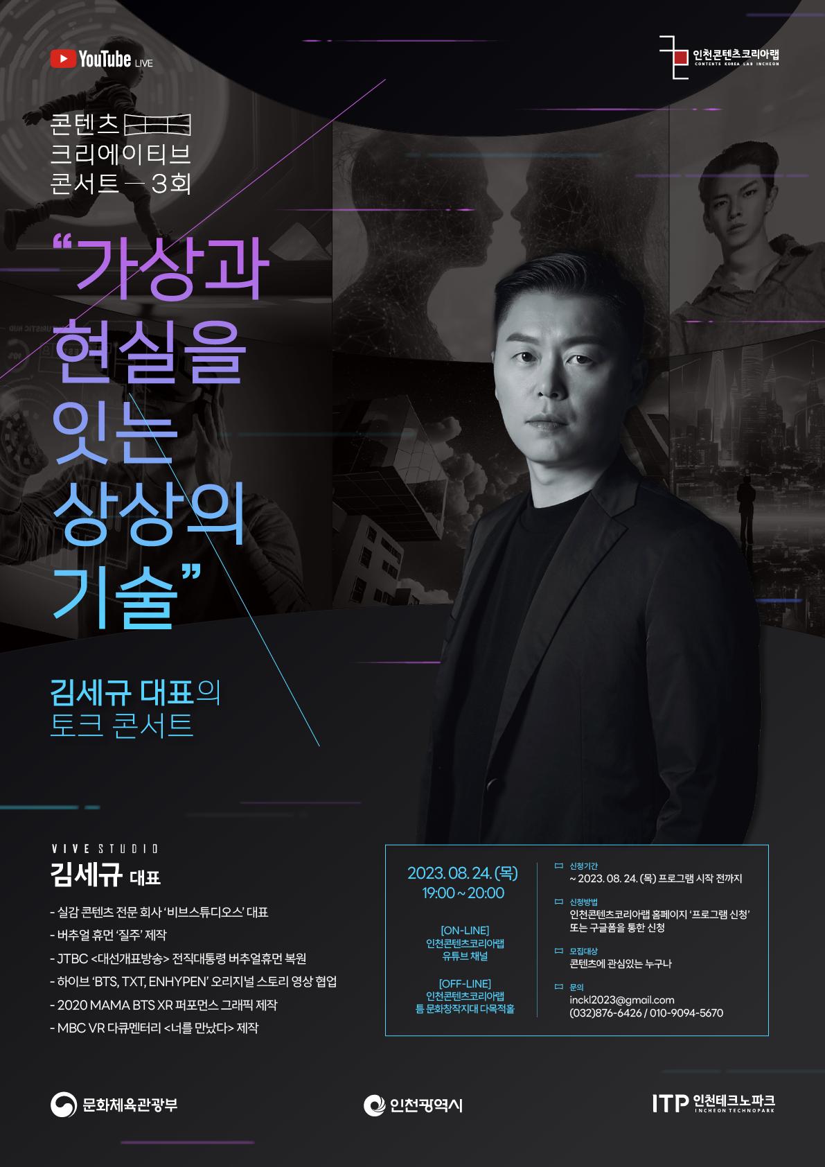 ▶ 문의: 032) 876-6426 / inckl2023@gmail.com (인천콘텐츠코리아랩 운영사무국)
