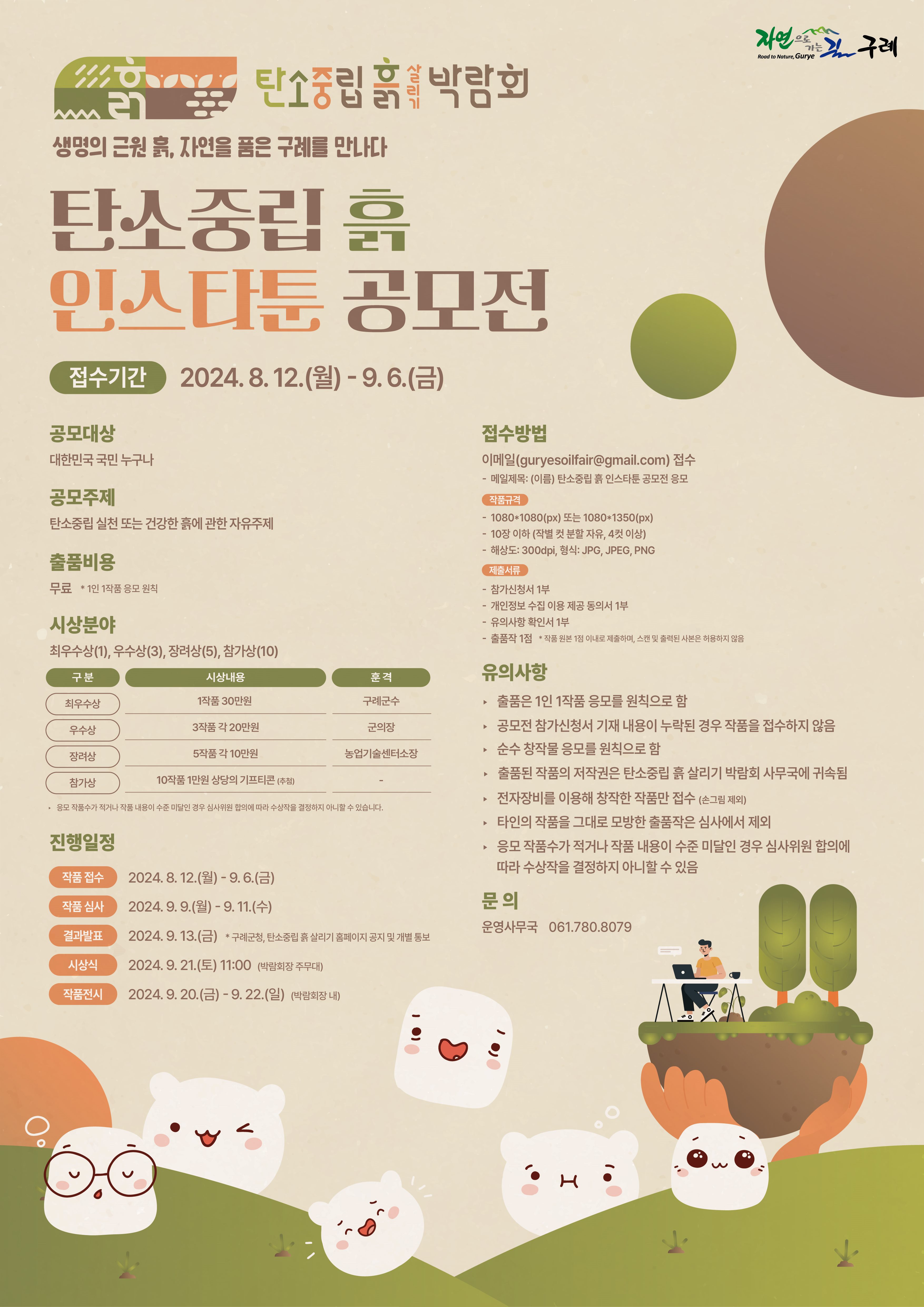 2024구례 탄소중립 흙 살리기 박람회에서<탄소중립 흙 인스타툰 공모전>을 개최합니다.