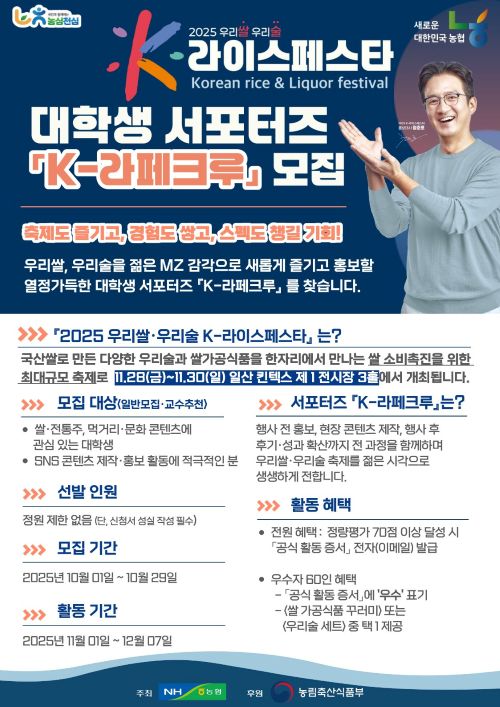 행사명 : 2025 우리쌀·우리술 K-라이스페스타서포터즈