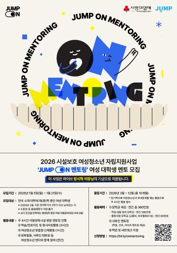 2026 시설보호 여성청소년 자립지원사업 「JUMP ON 멘토링」에서 활동할 여성 대학생 멘토를 모집합니다.