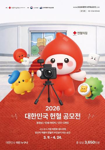 - 공모전 홈페이지(www.2026대한민국헌혈공모전.com)을 통해 접수