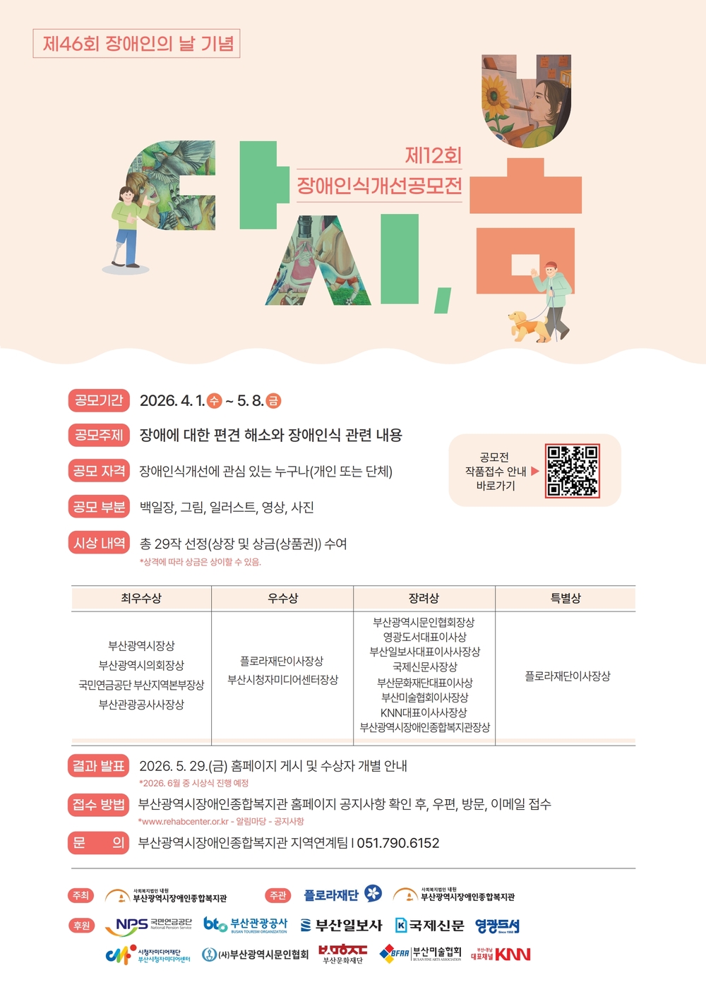 - 우편: 부산광역시 연제구 중앙대로1150번길 15(부산광역시장애인종합복지관 지역연계팀)